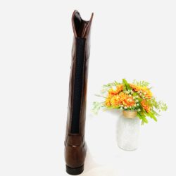 In stoc depozit | Material: piele naturala exterior + elastic spate, material textil interior, brant: piele naturala, talpa: cauciuc. Culoare: maro inchis, inaltime toc: 2.3cm; inaltime cizma 47cm Made in Italy