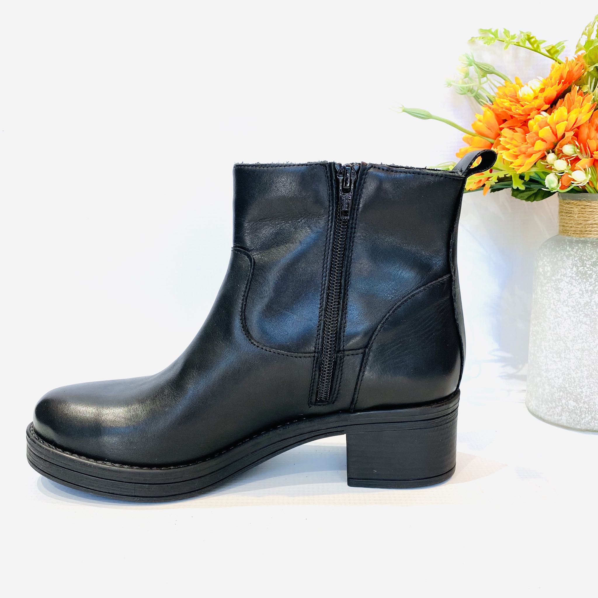 In stoc depozit | Material: piele naturala exterior,piele naturala interior, brant: piele naturala, talpa: cauciuc. Culoare:negru, inaltime toc: 5cm; Made in Italy